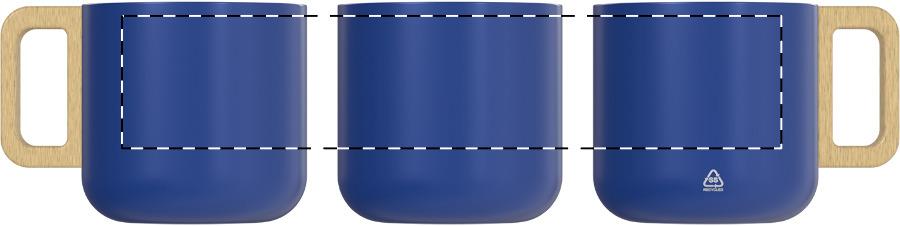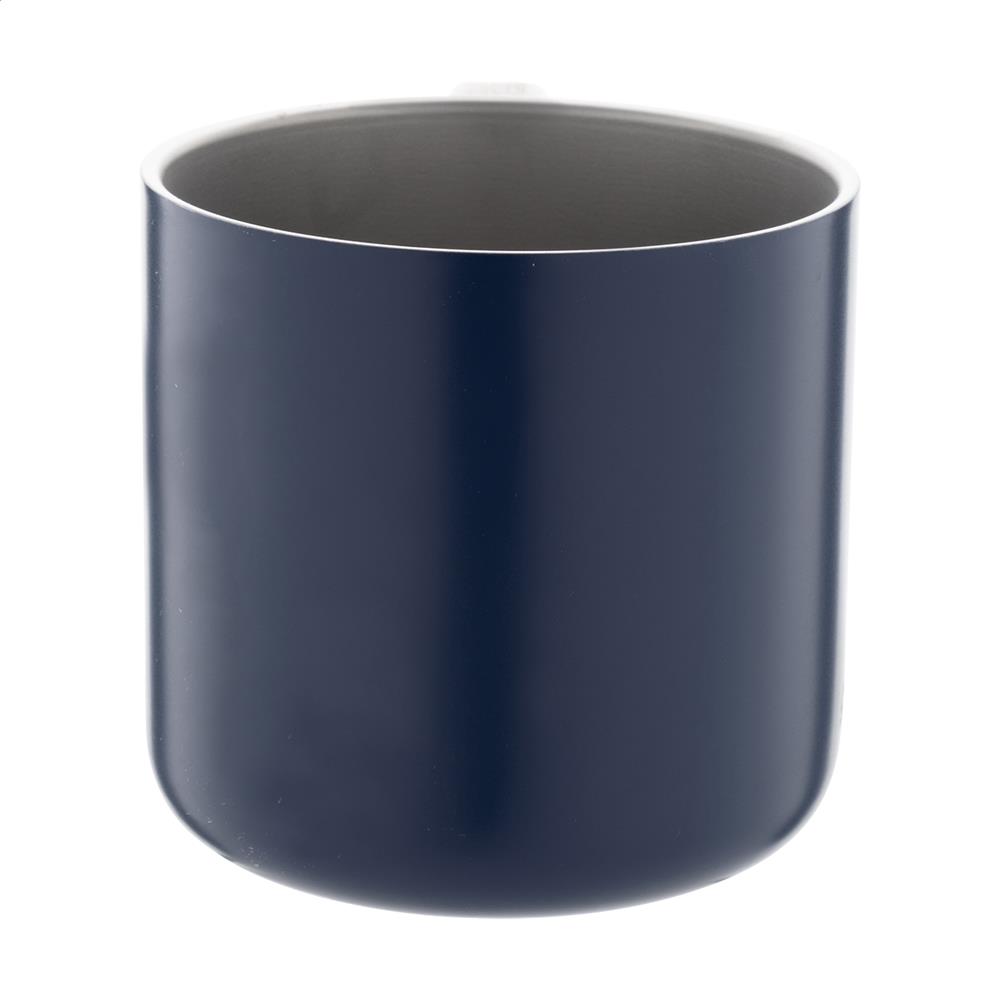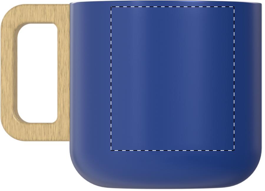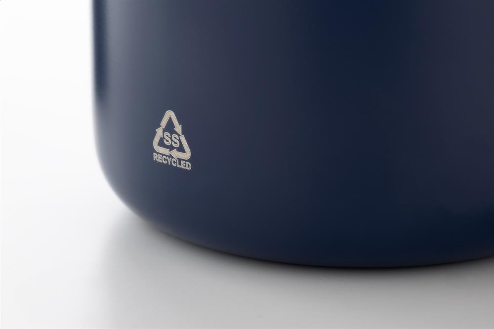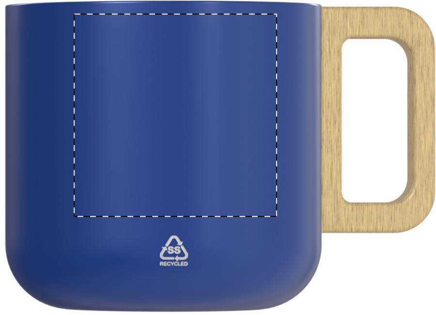 Doppelwandiger Thermobecher aus recyceltem Edelstahl mit Holzgriff. Füllmenge: 350 ml.