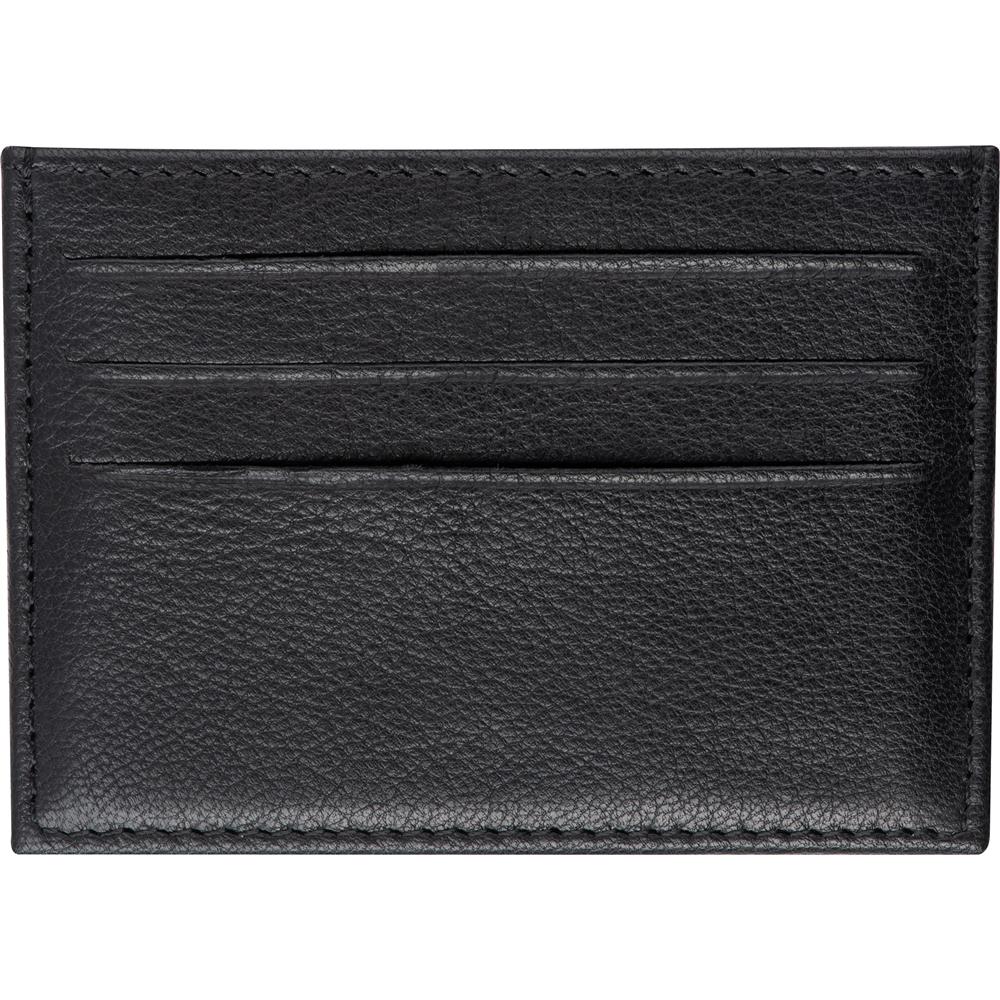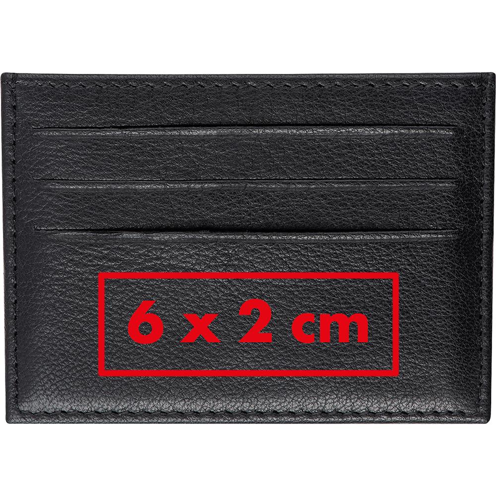 RFID Kreditkartenetui aus echtem Leder mit Platz für je 3 Kreditkarten auf jeder Seite sowie einem Geldfach. Das Etui schützt ihre wichtigsten Karten vor dem Auslesen. Ihre Werbung wird auf das Etui gedruckt.