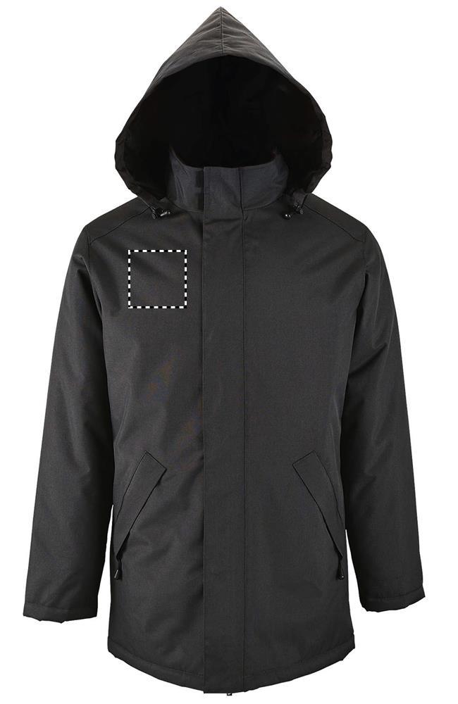 SOL'S ROBYN, Unisex-Jacke mit wattiertem Innenfutter, 100% Polyester - PVC-Beschichtung, Futter und Wattierung: 100% Polyester Oxford 300d, Reißverschluss mit doppeltem Schieber und Knopfleiste mit selbstklemmenden Bändern und verdeckten Druckknöpfen, Kapuze im Kragen, fleecegefütterter Innenkragen, 2 Reißverschluss-Außentaschen mit Patten, 1 Innentasche, Manschettenverschlüsse. Zur Größenanpassung beachten Sie bitte die Größentabelle im Abschnitt Produktdokumentation.