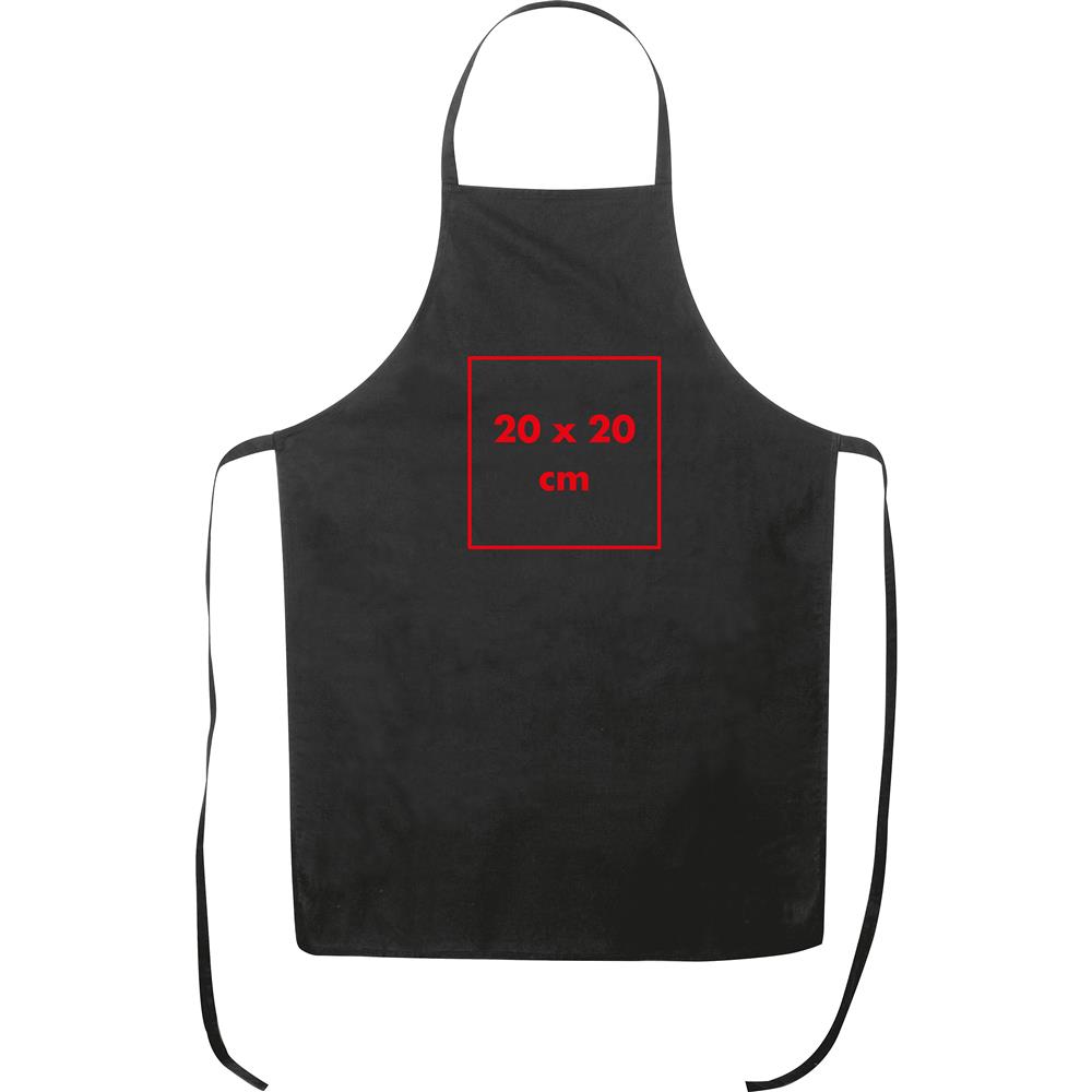 Schürze aus Baumwolle in Oeko-Tex® STANDARD 100 (170g/m²) in verschiedenen Farben. Der Werbeaufdruck erfolgt direkt auf der Schürze.