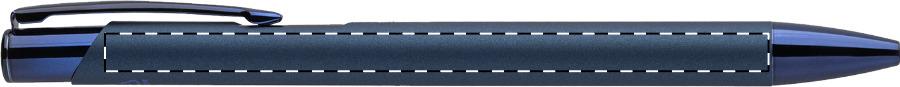 Kugelschreiber aus recyceltem Aluminium mit gummiertem Gehäuse und farbig glänzenden Metallteilen, blauschreibend. Mit Spezialbeschichtung für Spiegelgravur passend zu den Metallteilen.