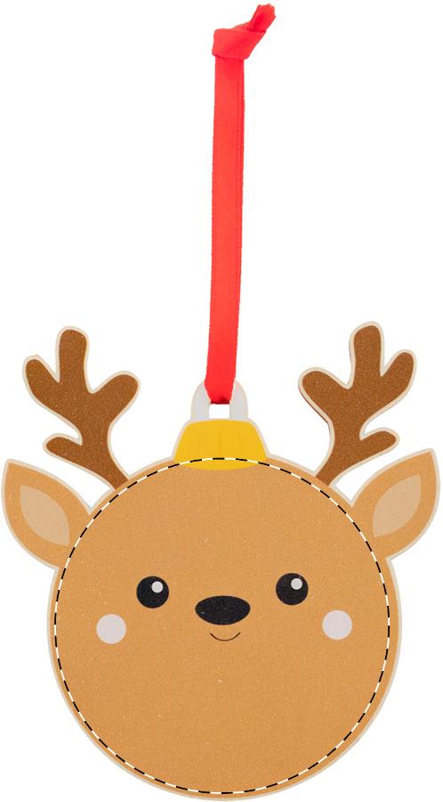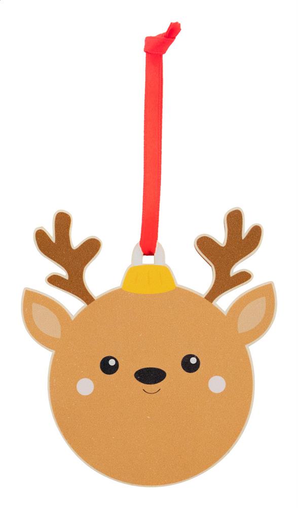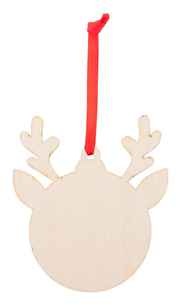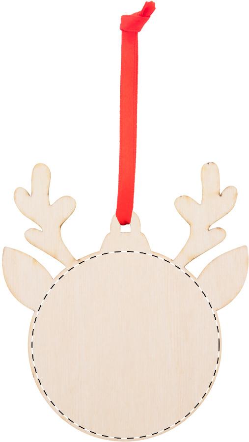 Weihnachtsbaumschmuck aus Birkensperrholz, mit aufgedrucktem Weihnachtsmotiv und rotem Band (separat beiliegend).