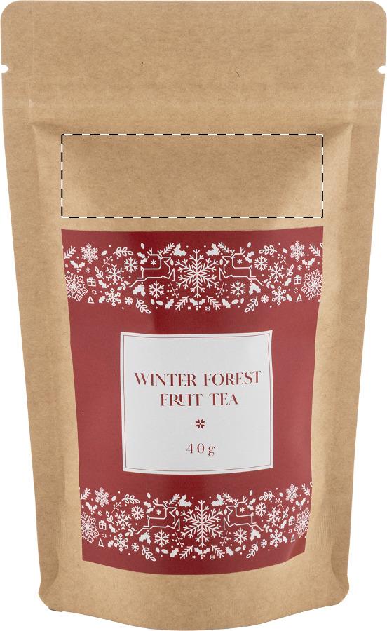 Waldfrüchte-Wintertee als loser Blatttee, verpackt in einer natürlichen Kraftpapiertüte. 40 Gramm.