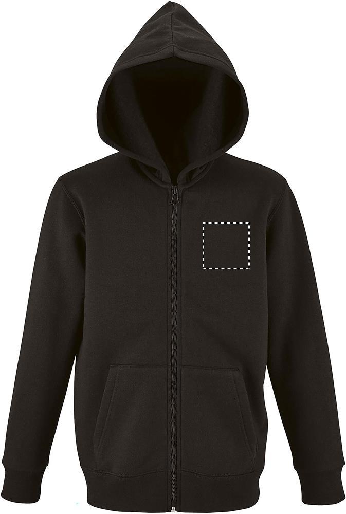 SOL'S STONE KIDS, KIDS' ZIP HOODIE, 50% ringgesponnene Baumwolle - 50% Polyester BRUSHED FLEECE 260, angesetzte Ärmel, 2 Kängurutaschen, Kapuze, gerippte Bündchen an Ärmeln und Saum, schlauchförmig. Zur Größenanpassung beachten Sie bitte die Größentabelle im Abschnitt Produktdokumentation.