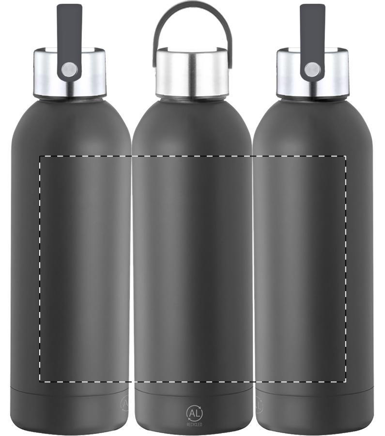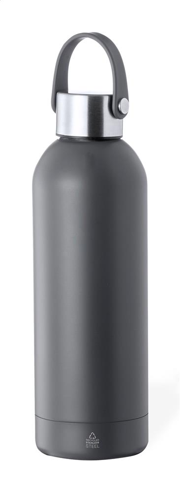 Doppelwandige vakuumisolierte Flasche aus recyceltem Edelstahl mit Trageverschluss. Füllmenge: 500 ml.