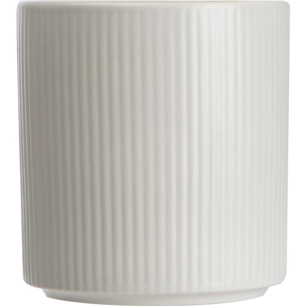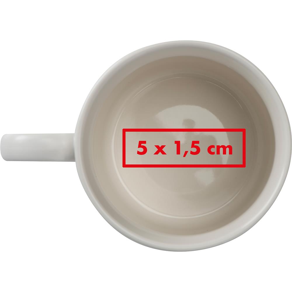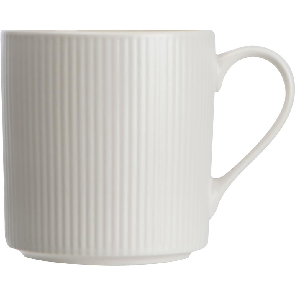 Große Tasse aus Keramik mit geriffeltem Muster und einem Füllvermögen von 400ml. Die Werbung wird in die Tasse gedruckt.