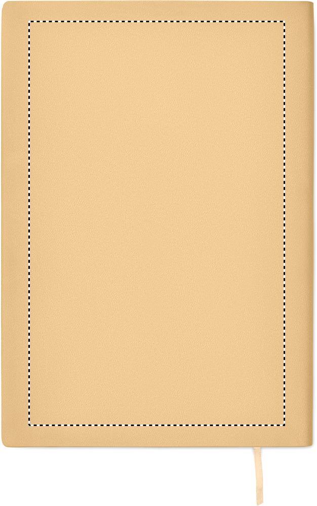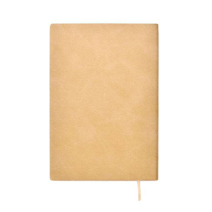 DIN A5 Notizbuch mit geripptem Soft Cover aus 40% recyceltem Post Consumer Smokey PU und 60% PU mit PU Patch. 80 Blatt (160 Seiten) 70 g/m² Recyclingpapier. Farblich passendes Lesebändchen.