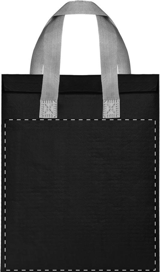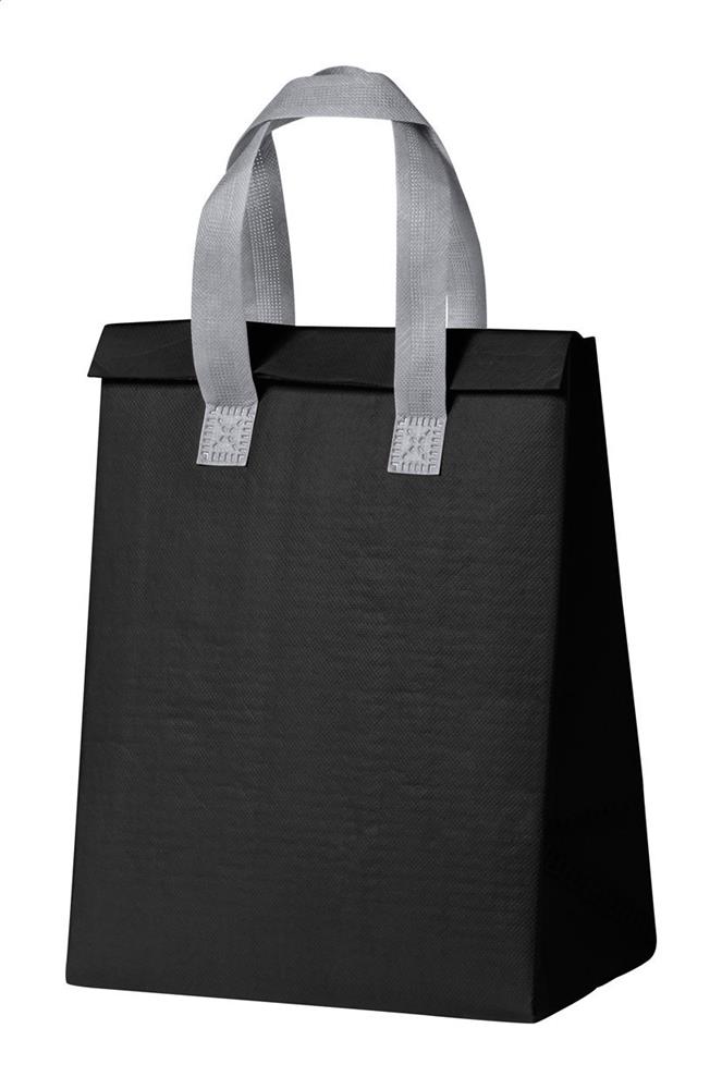 Kühltasche aus laminiertem Vliesstoff mit Griffen, Klettverschluss und Aluminiumpolsterung.