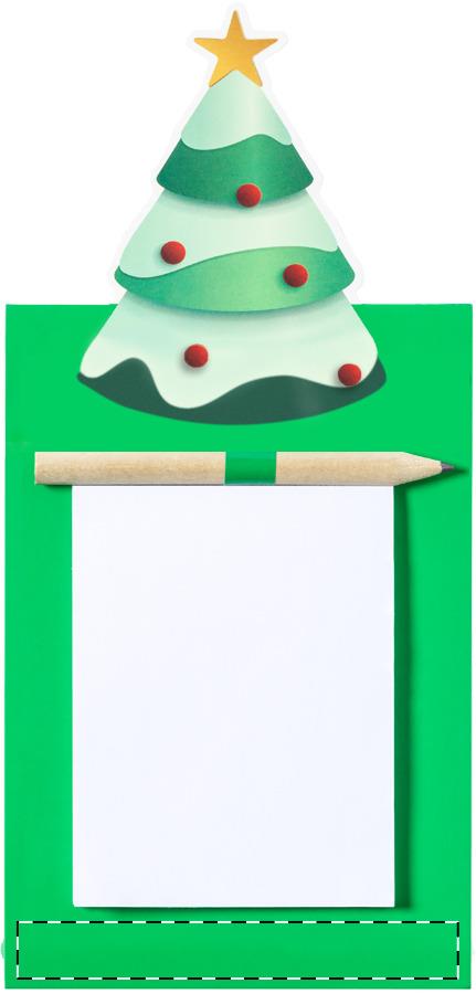 Magnetischer Notizblock (40 Blätter, blanko) mit Weihnachtsbaumfigur und Mini-Bleistift.