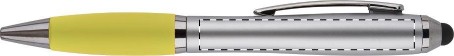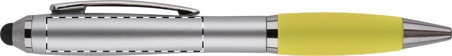 Kunststoff-Kugelschreiber mit Touchpen, silbernem Schaft und farbiger Gimmi-Griffzone, blauschreibend.