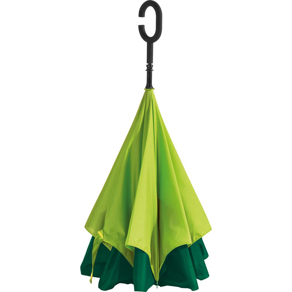 Umklappbarer Regenschirm aus 190T Pongee mit Griff zum Einhängen am Handgelenk. Mit diesem Schirm haben Sie immer Ihre Hände frei und können ohne nass zu werden ins Auto einsteigen. Ihre Werbung wird auf ein Segment gedruckt.