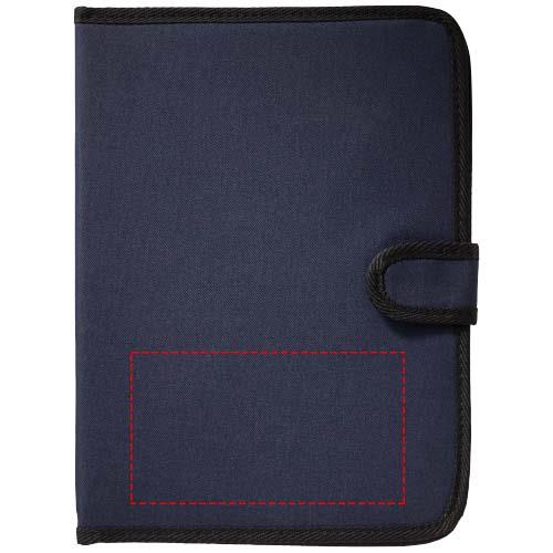 Mappe mit Klettverschluss, Stiftschlaufe, Dokumentenfach und Notizblock mit 20 Blatt, liniert.