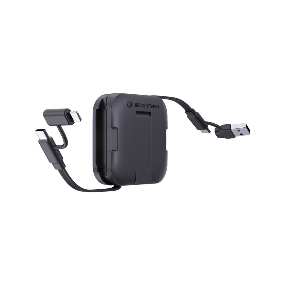 San Jose ist ein 100W-Handyhalter mit integriertem ausziehbarem Ladekabel, das superschnelle Energieversorgung und Komfort bietet. Mit seinem magnetischen Handyhalter und Ständer hält San Jose Ihr Smartphone sicher und im perfekten Winkel. Das einziehbare rTPE-Kabel lässt sich auf bis zu 100cm ausziehen und bietet superschnelles Laden mit einer Leistung von bis zu 100W über das USB-C-zu-USB-C-Kabel. Es wird außerdem mit USB-A-zu-USB-C- und USB-A-zu-iOS-Anschlüssen geliefert, sodass es vielseitig einsetzbar ist und eine Vielzahl von Geräten aufladen kann. Darüber hinaus unterstützt es die Datenübertragung für eine Datensynchronisation während des Ladevorgangs. San Jose wird aus rABS- und rTPE-Materialien hergestellt, die nach dem RCS-Standard (Recycled Claim Standard) zertifiziert sind. Der Gesamtanteil an recycelten Materialien beträgt 59 % des Produktgewichts. Urban Vitamin-Produkte werden ohne PVC hergestellt und in einer Verpackung mit reduziertem Kunststoffanteil geliefert.