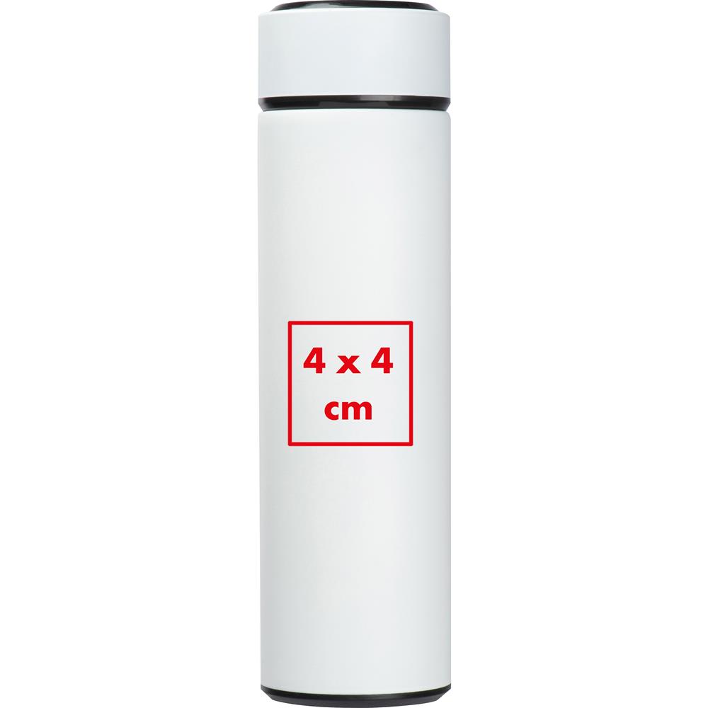 Vakuum Edelstahlflasche mit Temperaturanzeige im Deckel und einem Füllvermögen von 450ml. Einfach berühren und die Temperatur des Getränks wird angezeigt. Ihre Werbung lasern wir auf die Flasche.
