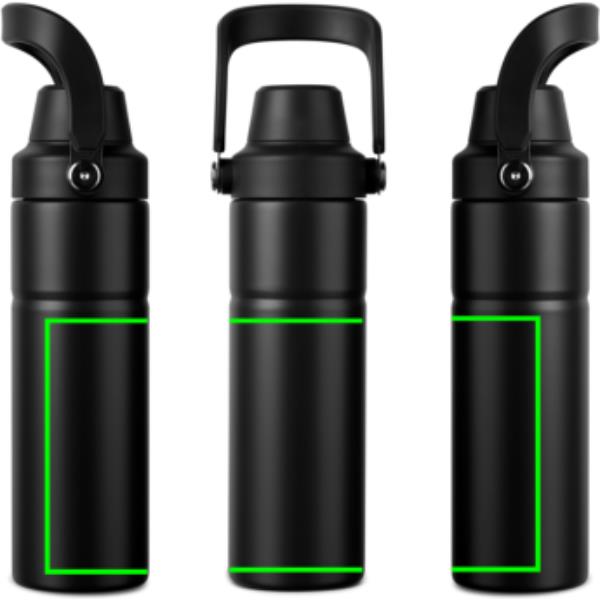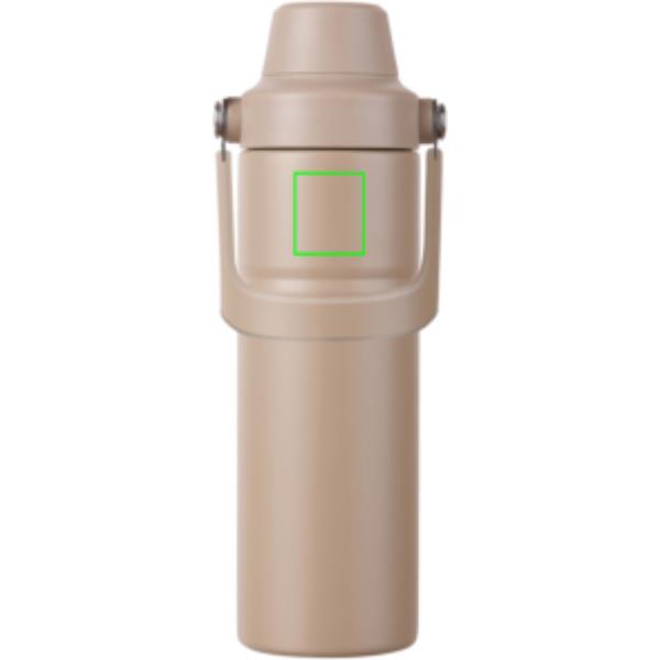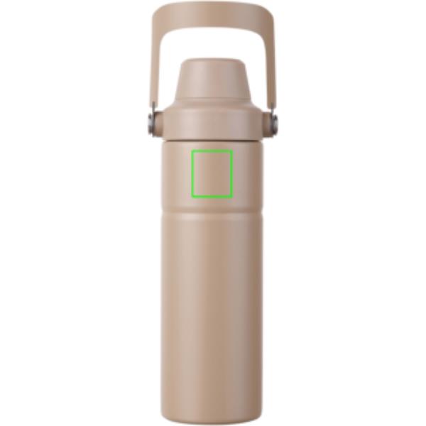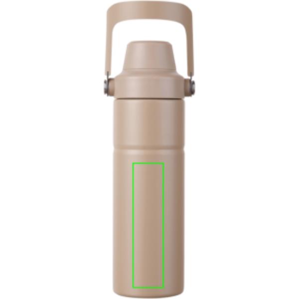 Eine moderne und langlebige doppelwandige Vakuumflasche aus recyceltem Edelstahl. Mit ihrem praktischen Griff ist diese Flasche perfekt auf Funktionalität ausgelegt und eignet sich ideal für Ihre Abenteuer. Der Deckel verfügt über zwei Öffnungen: eine schluckfreundliche Oberseite für einfachen Zugang und eine größere Öffnung zum mühelosen Nachfüllen und einfachen Reinigen. Die doppelwandige Isolierung hält Ihr Getränk bis zu 12 Stunden lang kalt und bis zu 4 Stunden lang heiß und sorgt dafür, dass Sie während Ihrer Reise erfrischt bleiben. Nicht spülmaschinen- oder mikrowellengeeignet, nur Handwäsche. Die RCS-Zertifizierung (Recycled Claim Standard) garantiert, dass die gesamte Lieferkette der recycelten Materialien zertifiziert ist. Der gesamte recycelte Inhalt basiert auf dem Gesamtproduktgewicht. Dieses Produkt enthält 65% RCS-zertifizierten recycelten Edelstahl.