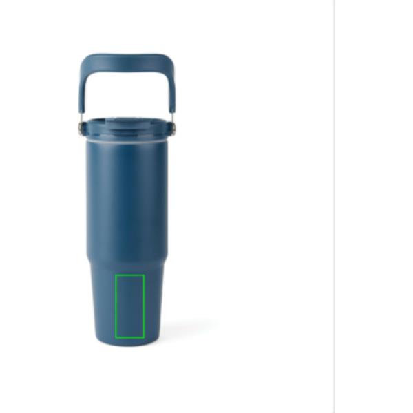 Diese 880ml Vakuumflasche aus recyceltem Edelstahl zeichnet sich durch ein modernes Design aus, das Funktionalität mit Stil verbindet. Die Flasche verfügt über einen funktionalen Griff zum einfachen Tragen, und der Deckel bietet zwei Möglichkeiten zur Aufnahme von Getränken. Die doppelwandige Isolation dieser Flasche hält Ihre Getränke bis zu 16h kalt und bis zu 3h heiß. Nicht spülmaschinen- oder mikrowellengeeignet, nur von Hand abwaschbar. Einschließlich FSC®-zertifizierter Kraftverpackung. Zertifiziert durch RCS (Recycled Claim Standard). Die RCS-Zertifizierung garantiert, dass die gesamte Lieferkette der recycelten Materialien zertifiziert ist. Der Gesamtanteil an recyceltem Material basiert auf dem Gesamtgewicht des Produkts. Dieses Produkt enthält 65% RCS-zertifizierten recyceltem Stainless-Steel.