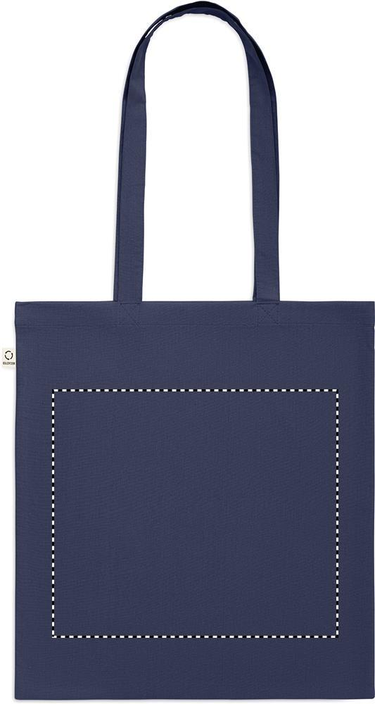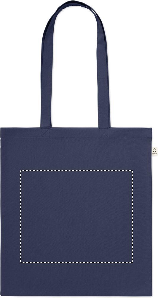 Einkaufstasche aus recycelter Post-Consumer-Baumwolle (70 % recycelte Baumwolle und 30 % RPET) mit langen Tragegriffen. 140 g/m². Artikel kann nach dem Bedrucken schrumpfen.