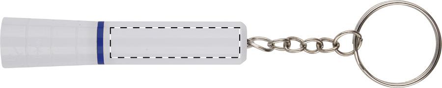 Mini-Taschenlampe aus Kunststoff mit weißem LED-Licht und Metall-Schlüsselring. Inkl. Knopfzellenbatterie.