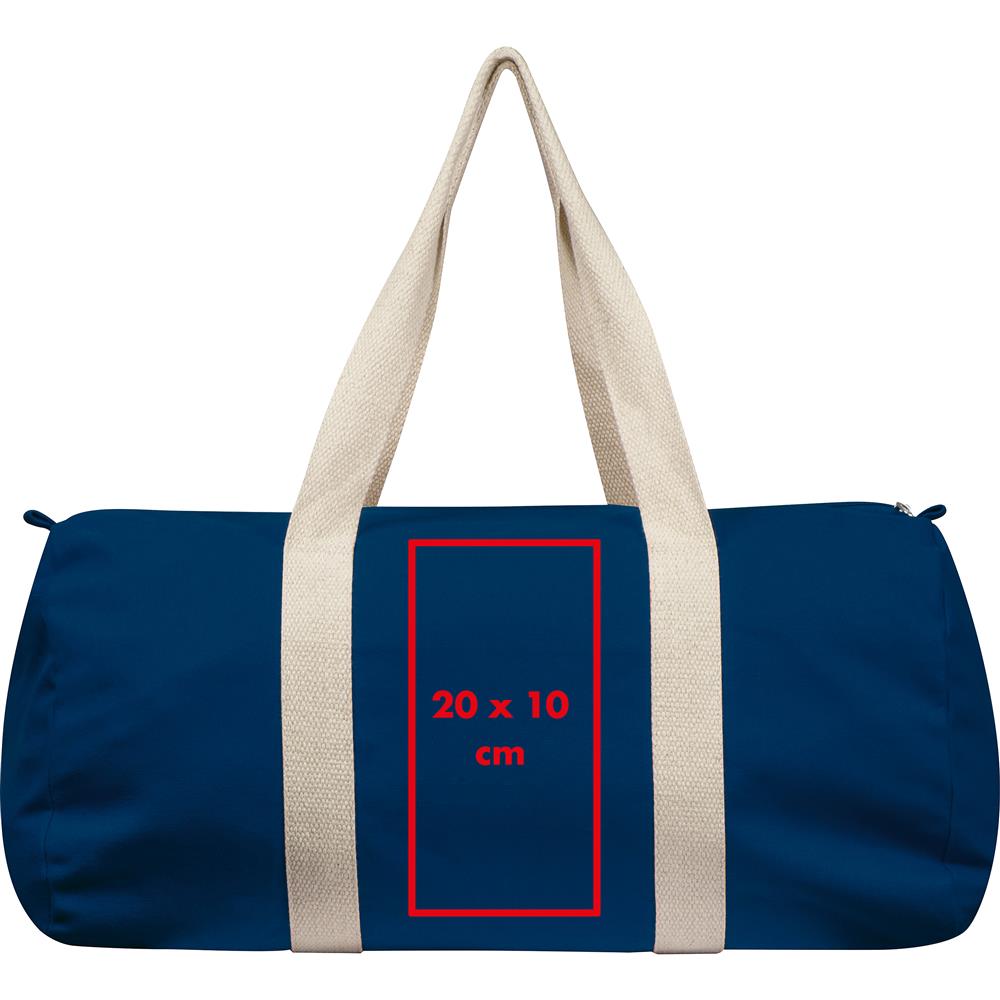 Der Weekender aus Canvas bietet viel Plaz und lässt sich mit seiner Füllkapazität von 22 Litern vielseitig auch als Sport- oder Strandtasche nutzen. Im Inneren befindet sich ein kleineres Reißverschlussfach. Ökotex zertifiziert. Ihre Werbung wird auf die Tasche gedruckt.