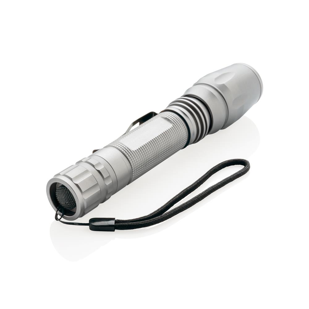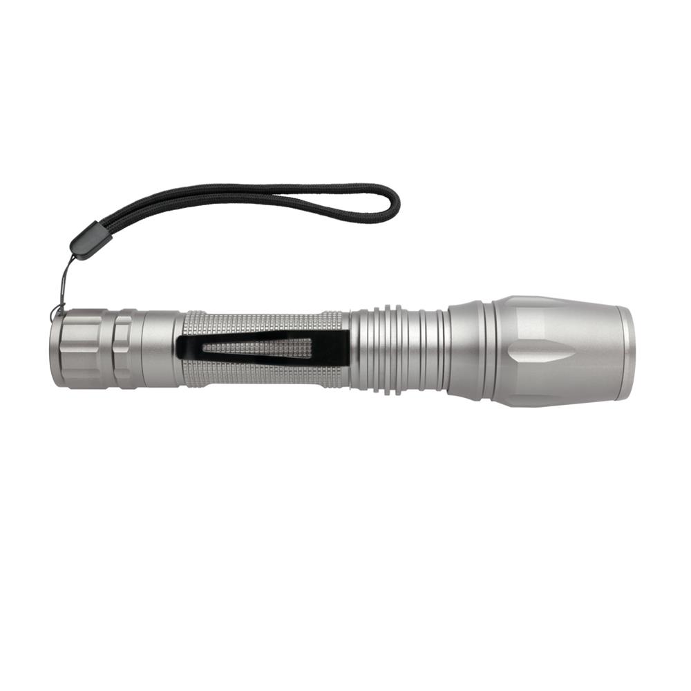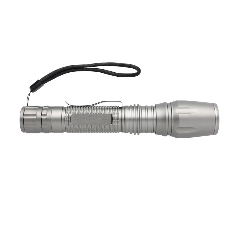 Diese robuste und widerstandsfähige Taschenlampe verfügt über ein sehr helles Licht, welches auch unter schwierigsten Wetterbedingungen zuverlässig einsetzbar ist. Die langlebige Aluminium Taschenlampe ist IPX4 wasserbeständig und stoßfest bis zu 1m Fallhöhe. Die Taschenlampe leuchtet mit einer Helligkeit von 250 Lumen und kann bis zu 6h genutzt werden. Der Lichtstrahl ist einstellbar auf eine breitflächige Beleuchtung oder auch fokussierbar. Inklusive Gürtelclip und Batterien für den sofortigen Gebrauch.