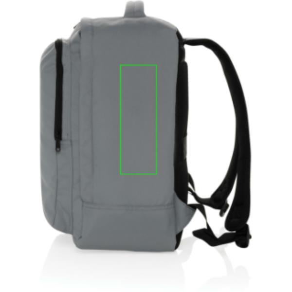 Der Ace Aware™ RPET Free On Board Travel Pack ist für preisbewusste Reisende gedacht, die Wert auf Komfort legen. Dieser kompakte Rucksack aus 100% rPET verfügt über verstellbare Schultergurte, einen Gurtgriff an der Oberseite und eine Reißverschlusstasche an der Vorderseite für schnellen Zugriff auf Ihre wichtigen Dinge. Das Hauptfach verfügt über einen elastischen Trolley-Gurt und mit einem Fassungsvermögen von 19 Litern passt er unter jeden Flugzeugsitz. Dieser Rucksack ist ideal für Wochenendtrips und erfüllt die Anforderungen an die maximale Handgepäckgröße bei Billigfluglinien, so dass keine zusätzlichen Gebühren für Ihr Gepäck anfallen. Hergestellt aus recyceltem Polyester, das mit dem AWARE™-Tracer versehen ist. 2% des Erlöses jedes verkauften Produkts mit AWARE™ werden an Water.org gespendet. PVC-frei.