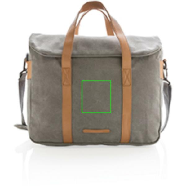 Lässige Tasche aus gepolstertem Canvas zum Schutz Ihres Laptops. Mit stylischen Applikationen aus Kunstleder. Für Laptops bis 15.6", sowie Ihre Dokumente und Tablet. Inkl. Abnehmbarem und verstellbarem Schultergut. PVC-frei.