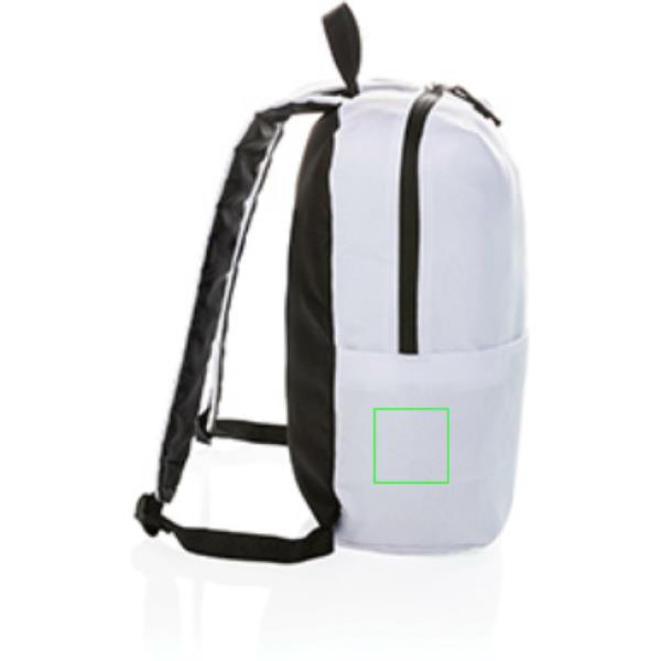 Praktisch und schlicht mit gradlinigem Design hat dieser Rucksack aus strapazierfähigem Polyester ein großes Hauptfach, sowie eine Vortasche für weitere persönliche Kleinigkeiten und zwei Seitentaschen für zum Beispiel einen Schirm oder eine Trinkflasche. PVC-frei.