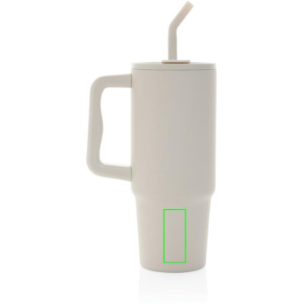 Erleben Sie, wie geräumig und doch bequem tragbar unser großzügig bemessener Becher ist - nicht zu groß, nicht zu klein. Dank des schlanken Bodens passt er perfekt in die meisten Getränkehalter und sorgt dafür, dass Sie erfrischt bleiben, egal ob Sie einen langen Meeting-Tag durchstehen oder eine Reise in die Stadt antreten. Dieser 900ml-Becher ist aus langlebigem, recyceltem Edelstahl gefertigt. Doppelwandig & vakuumisoliert. Er wird mit einem Schwappschutz-Deckel, einem Trinkhalm & einer Trinkhalmspitze aus Silikon geliefert. Er eignet sich sowohl für heiße als auch für kalte Getränke. Für eine optimale Pflege empfehlen wir Handwäsche. Die RCS-Zertifizierung gewährleistet eine vollständig zertifizierte Lieferkette für die recycelten Materialien. Gesamter recycelter Inhalt: 70%, bezogen auf das Gesamtgewicht des Artikels. BPA-frei.