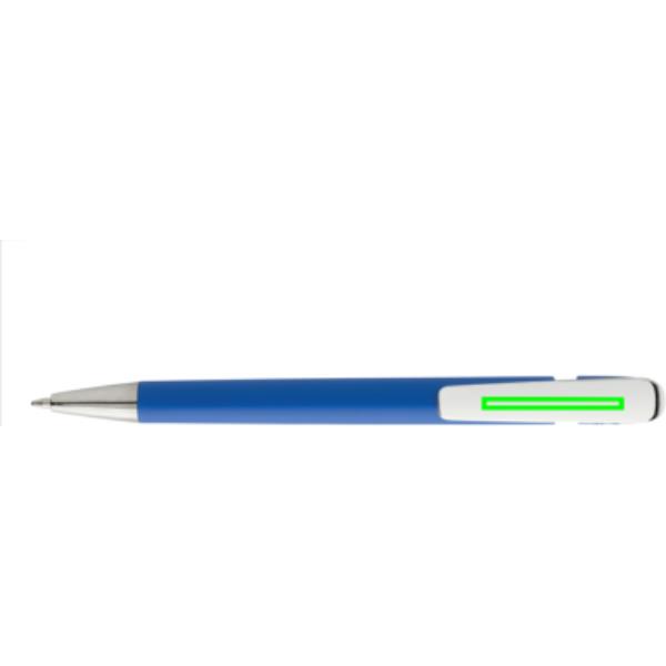 Kugelschreiber mit auffälligem Metallclip in Chromoptik. Mit ca. 1200m Schreiblänge, deutscher Dokumental®-Tinte in Blau und TC-Kugel für besonders flüssiges Schreiben. Hergestellt aus 55% recyceltem ABS, RCS-zertifiziert.