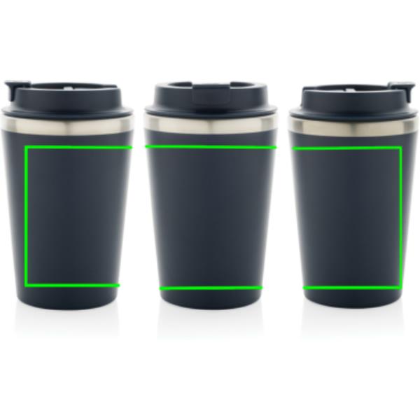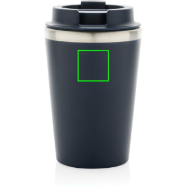 Wir präsentieren den perfekten Kaffeebegleiter für Ihren geschäftigen Tag! Unser tragbarer Kaffeebecher ist für das Leben unterwegs konzipiert - leicht und auslaufsicher. Egal, ob Sie pendeln, in Ihrem Lieblingscafé nachfüllen oder im Auto einen schnellen Schluck trinken, dieser Becher hält Ihren Kaffee heiß und Ihre Hände kühl. Außenwand aus recycltem PP, Innendwand aus Stainless Steel. Gesamter recycelter Inhalt: 36%, bezogen auf das Gesamtgewicht des Artikels. BPA-frei. Fassungsvermögen 350ml. Nur Handwäsche.