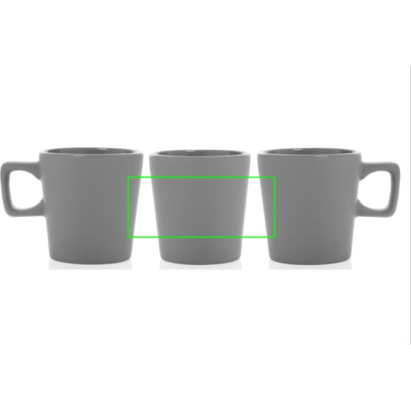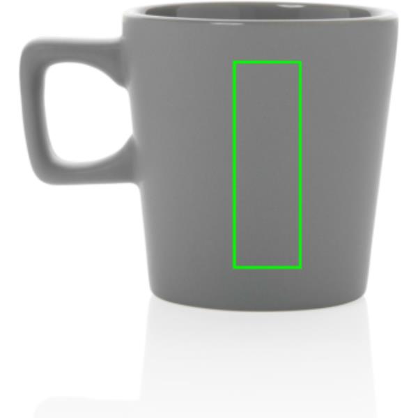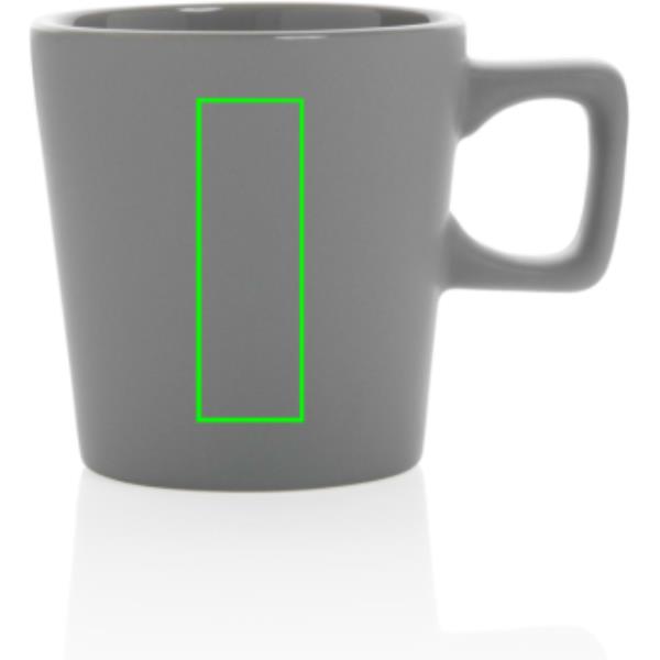 Dieser Keramikbecher sieht auf jedem Schreibtisch gut aus. Der Becher hat ein glänzendes Innenfinish und ein mattes Außenfinish. Der Becher ist spülmaschinenfest und gemäß EN12875-1 (mindestens 125 Waschzyklen) für alle Dekorationsmethoden geprüft. Verpackt in einer Geschenkbox. Kapazität 300ml.