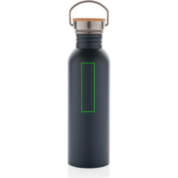 Eine Trinkflasche, die durch ihre Einfachheit schön ist. Diese moderne einwandige Edelstahlflasche mit Edelstahlgriff verfügt über einen Edelstahldeckel mit einer schönen Bambus Applikation. Kapazität 710ml. Nur Handwäsche. BPA frei.