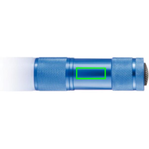 Eloxierte Aluminiumtaschenlampe mit 9 weißen LED's. Batterien inklusive.