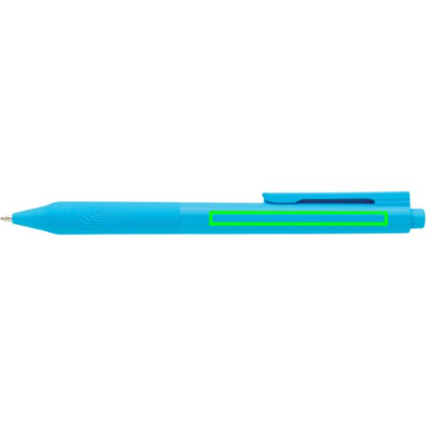 Das neueste Mitglied der X-Stift-Familie mit einem raffinierten Look und einem klaren einfarbigen Design. Perfekt für die Kommunikation Ihrer Markenbotschaft. Der Silikongriff sorgt für noch mehr Schreibkomfort. Die ca. 1200m blauschreibende Befüllung mit deutscher Dokumental®-Tinte und die TC-Kugel an der Spitze sorgen für besonders flüssiges Schreiben.