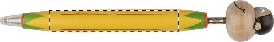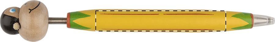 Holz-Kugelschreiber mit farbigem Schaft und Tierkopf am Stiftende, blauschreibend.